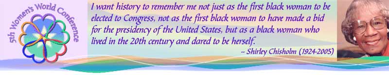 Support for the Idea of a 5th WWC occurred at the 2004 CSW meeting. During a NGO meeting of NGOs and governmental delegates held to discuss a 5th UN World Conference on Women, our delegation (5wwc) representing grassroots support from the US and Canada, helped to influence the need for such a gathering and the viability of grassroots support. Bringing forth grassroots women's support from individuals and organizations not accredited by the UN was greatly welcomed. Fear that the Beijing Platform for Action (see below) would be dismantled was laid to rest when the member states (governments) of the United Nations affirmed its commitment to not opening the Platform for Action document. For complete information, click here to go to WomenWatch.